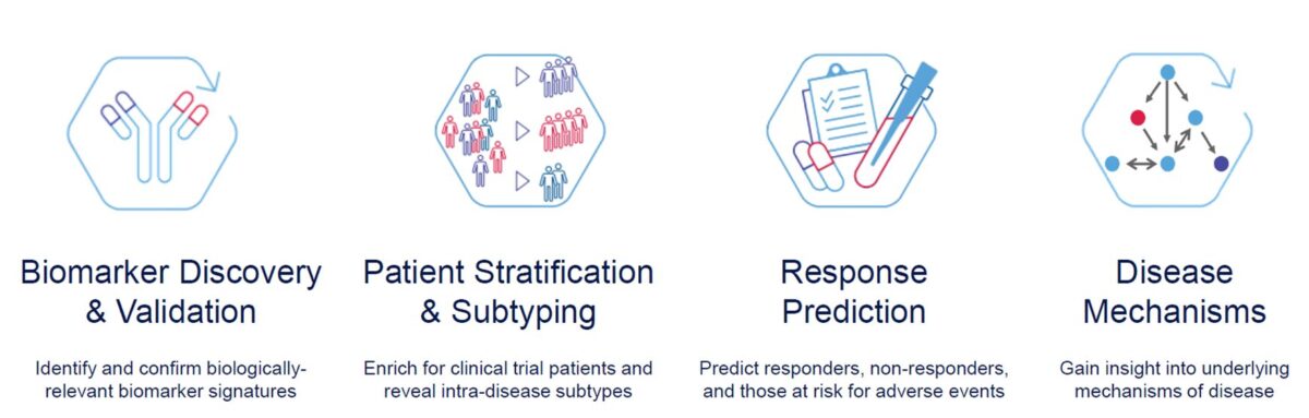 自己抗体の網羅的解析は、個々の患者の免疫学的特徴を可視化することで、治験被験者の階層化を可能にします。これにより、薬効や副作用の予測精度が向上し、臨床試験の効率化と新規治療法の開発に大きく寄与します。