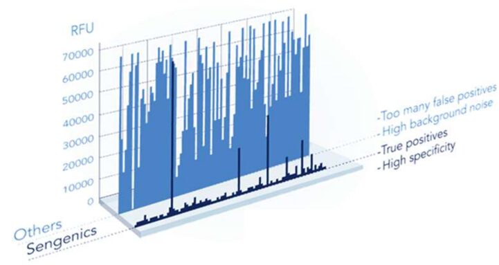 従来の測定では難しかった立体構造エピトープの維持も、KREXなら全長で正しく折りたたまれたタンパク質を用いた独自技術により、約2,000種の自己抗体を高感度・高特異的に網羅的に検出できます。