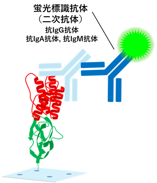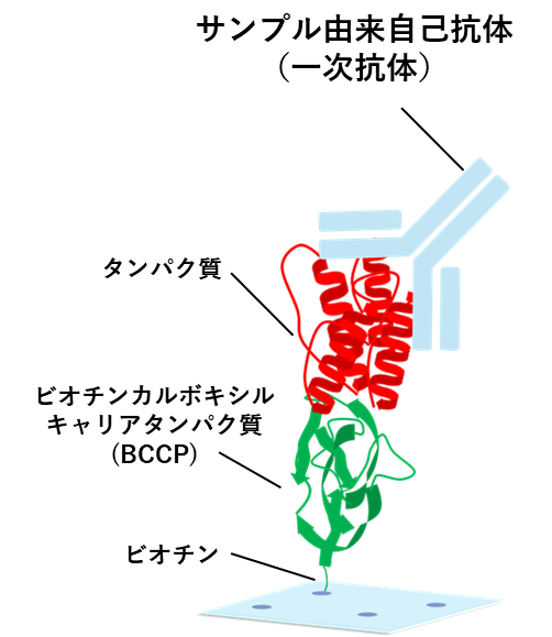 - BCCP付与抗原タンパク質は、ビオチンを介してアレイ上に結合し固定化される